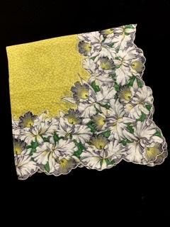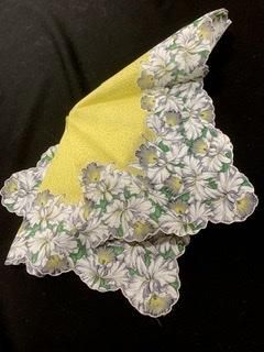 40s 50s 大きめ ハンカチーフ ハンカチ hanky ヴィンテージ スカラップ 黄色