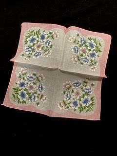 40s 50s ピンクのふちどり 可憐な花 ハンカチ ハンカチーフ ヴィンテージ デッドストック