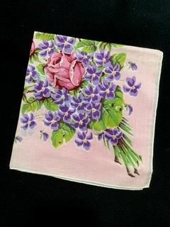 40s 50s ハンカチ ヴィンテージ 薔薇 バラ ハンカチーフ 紫 花束 ブーケ
