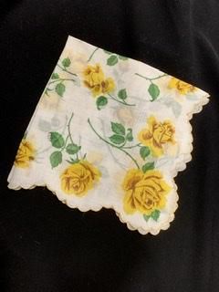 40s 50s 大きめ 黄色いバラ スカラップ ハンカチ ヴィンテージ デッドストック ハンカチーフ