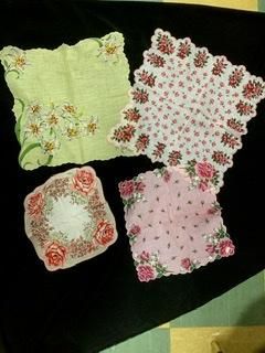 大きめ 40s 50s スカラップ グリーン ゆり 百合 ヴィンテージ ハンカチ ハンカチーフ デッドストック