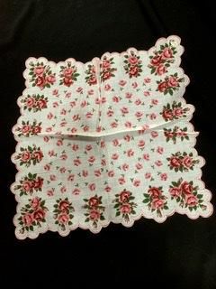 大きめ 40s 50s スカラップ 赤い薔薇 ヴィンテージ ハンカチ スカーフ ハンカチーフ デッドストック