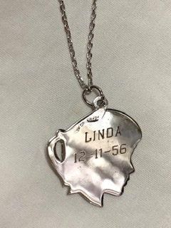 男女兼用 50s ポニーテール LINDA 生年月日 シルバー ペンダント ネックレス ヴィンテージ アクセサリー 子供 チャーム