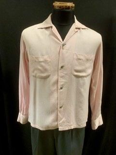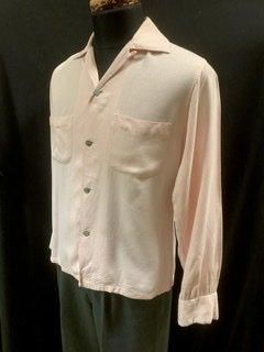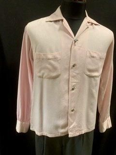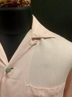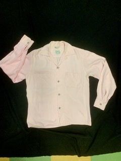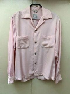 50s ピンク ギャバシャツ メタルボタン 水色ボタン ヴィンテージ ギャバジン ロカビリー 1950年代 オープンカラーシャツ