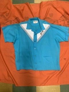 50s V字の切替、ツートーン ボーリングシャツです。
