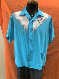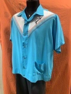 50s V字 切替 ツートーン ボーリングシャツ ヴィンテージ King Louie キングルイ レーヨン 1950年代 ターコイズブルー