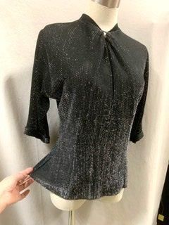 50s 黒 シルバー ラメシャツ ブラウス ヴィンテージ ロカビリー 1950年代 ラメ 背中ボタン
