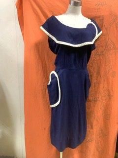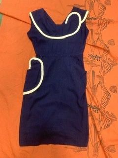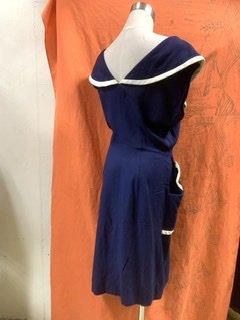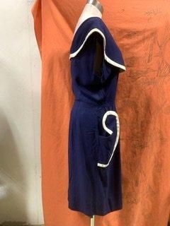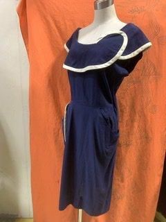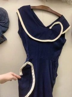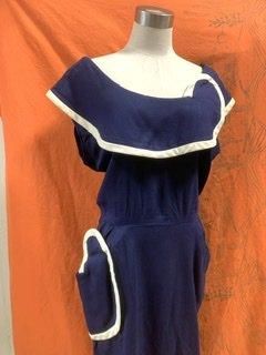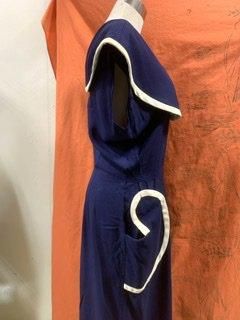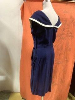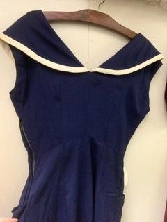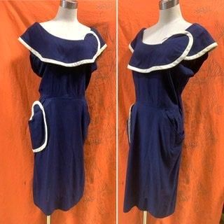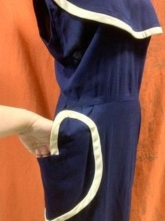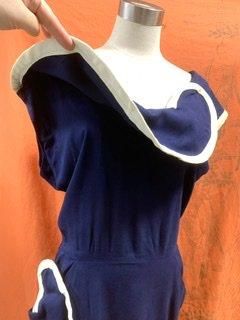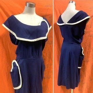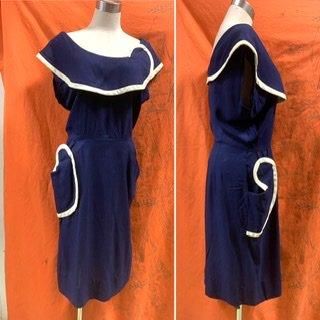 40s 50s セーラーふう 紺白 ワンピース ヴィンテージ レーヨンドレス マリン シンメトリー 1940年代 1950年代