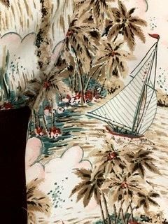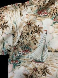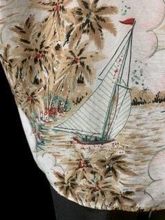 50s 60s ヨット柄 椰子の木 ハワイアンシャツ レーヨン ハワイアン アロハ アロハシャツ ヴィンテージ 古着 Tahitian