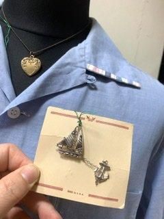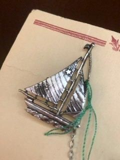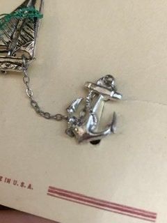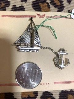 50s 紙タグつき デッドストック 揺れるブローチ イカリ ヨット ブローチ 2連ブローチ