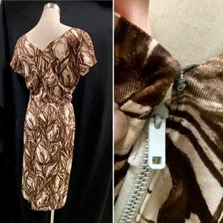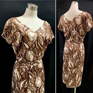 40s 50s 前も後ろもVネック ワンピース ドレス タイトスカート Vネック ヴィンテージ ペンシルドレス ペンシルスカート クラシカル 1950年代