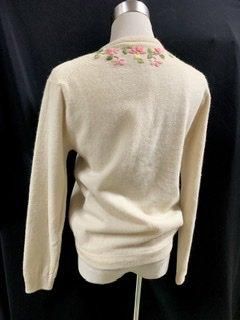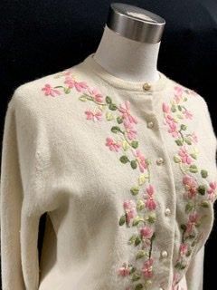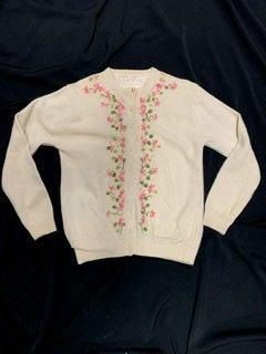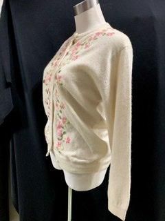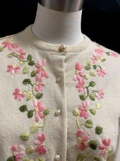 50s 60s 刺繍 カーディガン ヴィンテージ コスモス マーガレット 総裏地つき 裏地 ニット 古着
