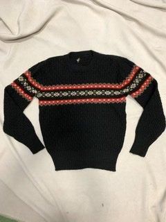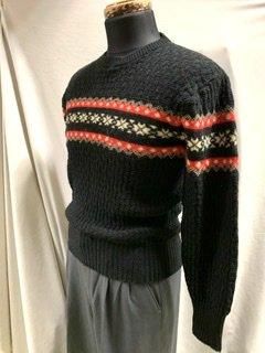 50s ダイヤ柄 雪柄 ジャガードセーター ロカビリー ヴィンテージ 1950年代 リブ長 Snow柄 スノー柄 黒赤白 セーター