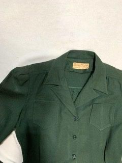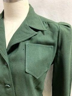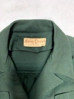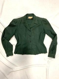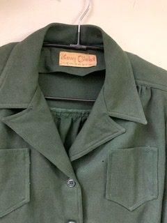 30s 40s 緑 パフスリーブ ギャバジン シャツジャケット グリーン ウールギャバジン ヴィンテージ グリーン シャツ ジャケット