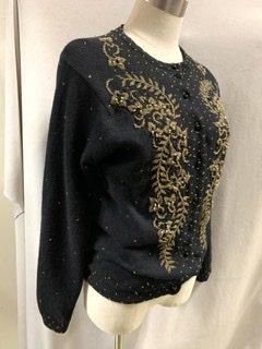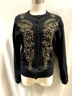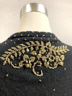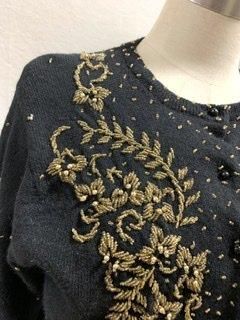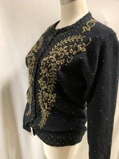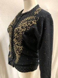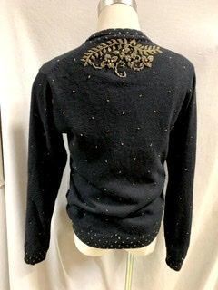 50s 黒 揺れるビーズ カーディガン ヴィンテージ 1950年代 裏地つき 1950年代 黒カーディガン ビーズカーディガン