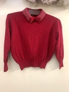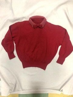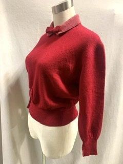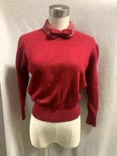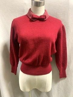 50s 赤白 水玉 衿つき ニット カシミヤ セーター ヴィンテージ 1950年代 リボン 赤 衿つきセーター