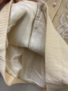 クリーム色に、白のビーズ刺繍がとても凝っています。