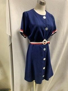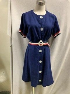 50s ベルトつき トリコロール レーヨンワンピース ヴィンテージ マリン リンディホップ スウィングダンス