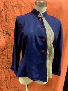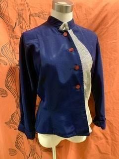 40s 50s ペプラム プリーツ レーヨンジャケット ヴィンテージ 1940年代 赤ボタン ギャバジン