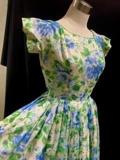 50s シフォン パニエ パーティドレス ヴィンテージ 1950年代 ブルー グリーン