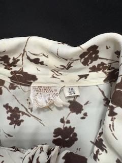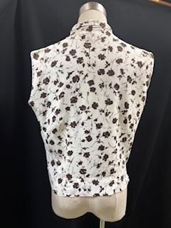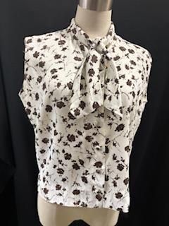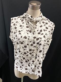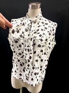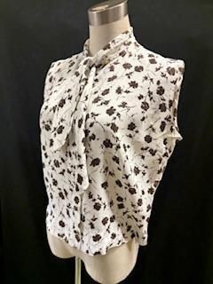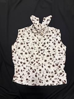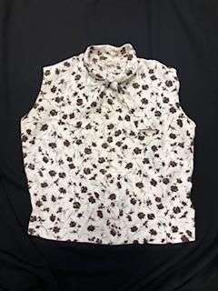 50s 60s 前リボン ブラウス ノースリーブ ヴィンテージ シャツボータイ ボウタイ 総柄