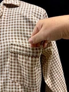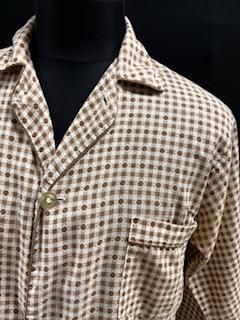 50s 60s 幾何学模様 USA チェック シャツ 長袖シャツ パジャマシャツ ヴィンテージ パイピング ヴィンテージ 古着