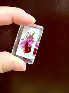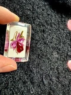 透明のルーサイトの中に、お花が閉じ込められています。