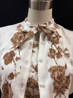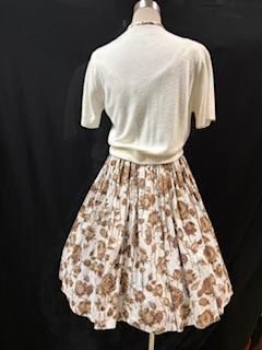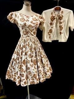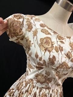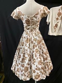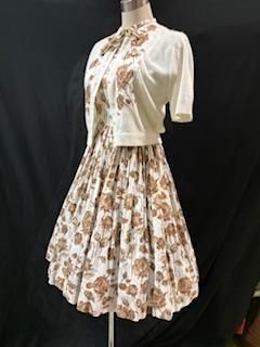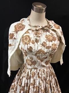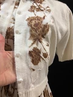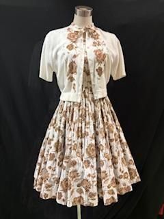 50s セットアップ ドレス 半袖カーディガン ヴィンテージ アメリカ USA ワンピース ブラウン 薔薇 バラ サーキュラーワンピース