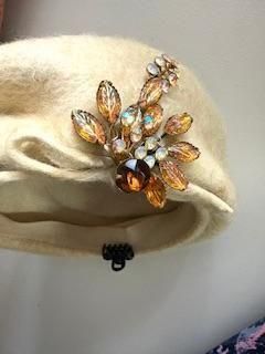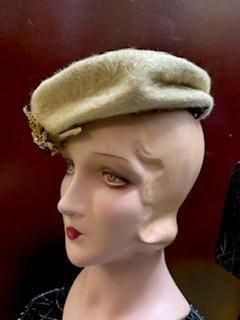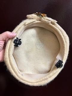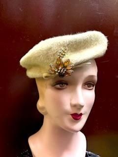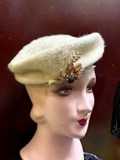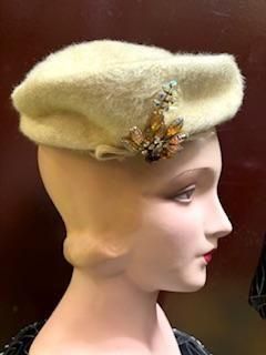 40s 50s ブローチつき クリーム色 ハット ヴィンテージ 変形ベレー帽 1950年代