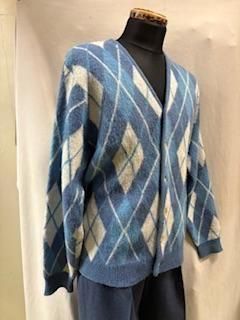 1960年代 当時モノ、かなりの大きめがポイントです。アーガイルのモヘアカーディガンです。